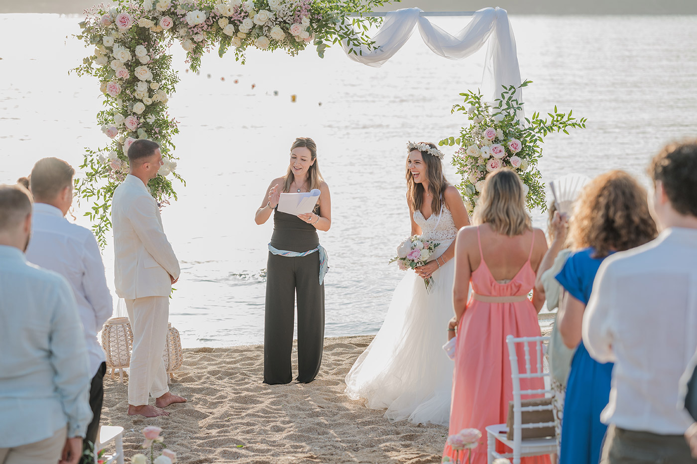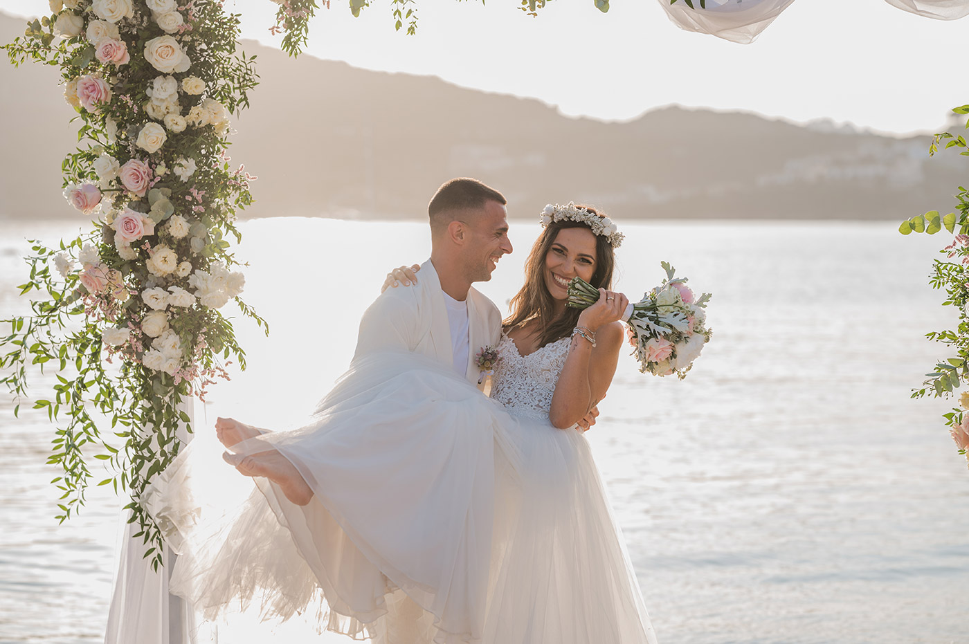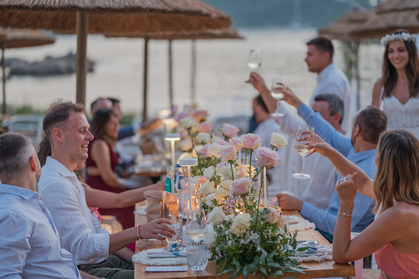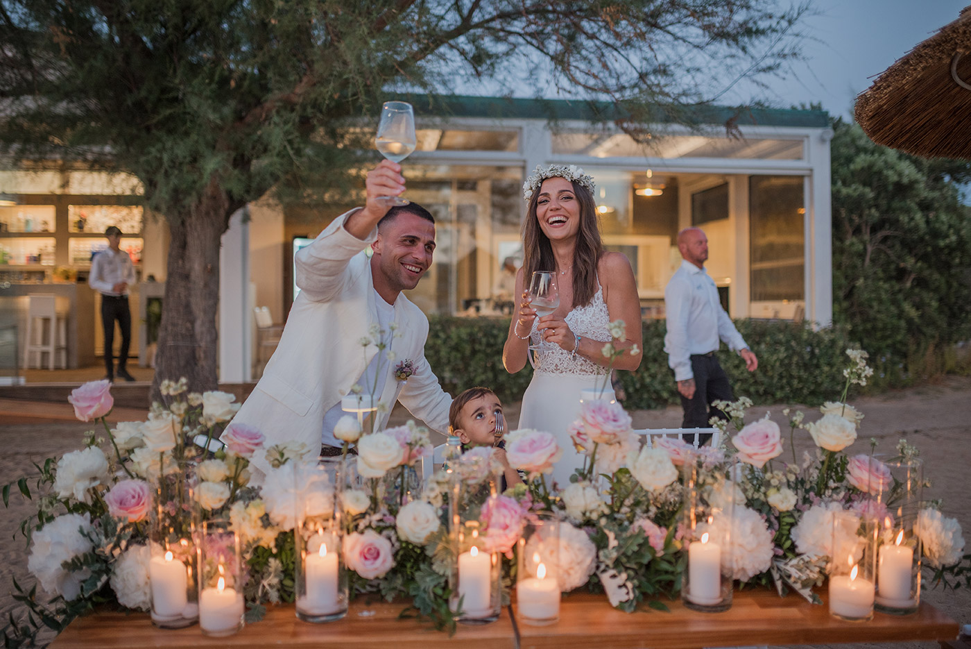 Arrivati in barca su una spiaggia riservata, hanno vissuto una giornata piena di sorrisi, tenerezza e colori delicati, ispirati alla luce del Mediterraneo.
