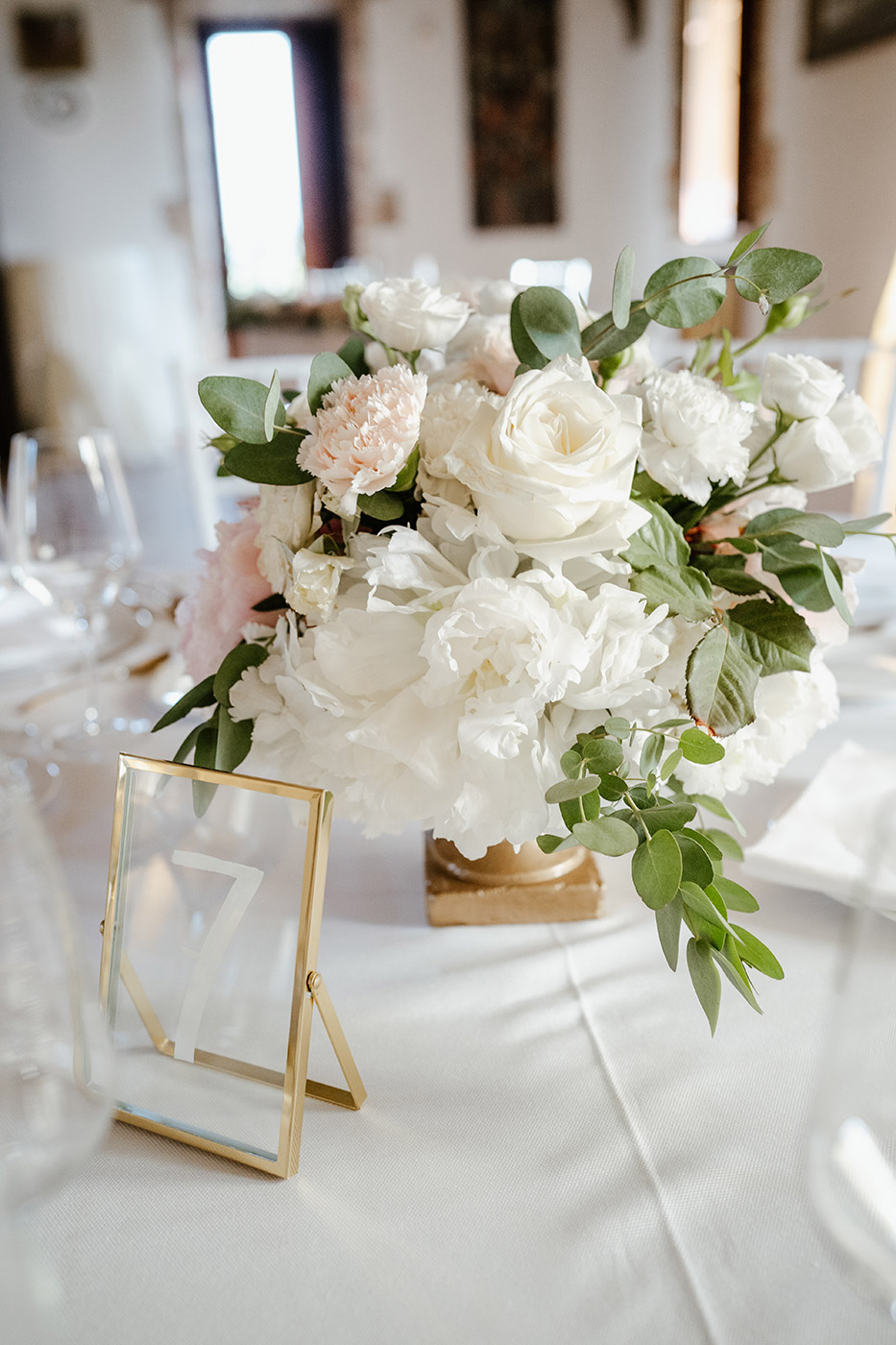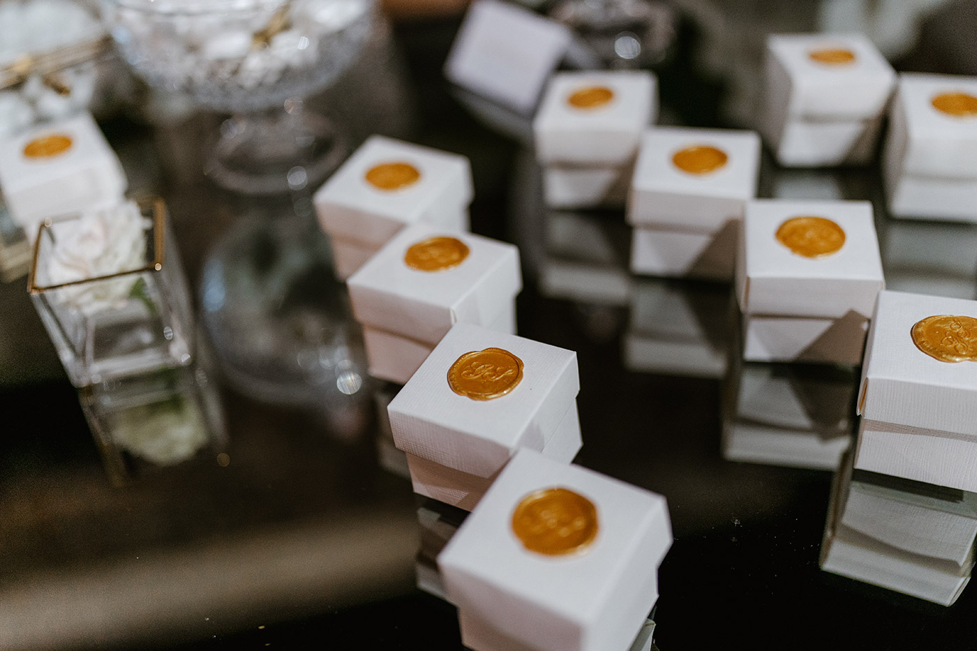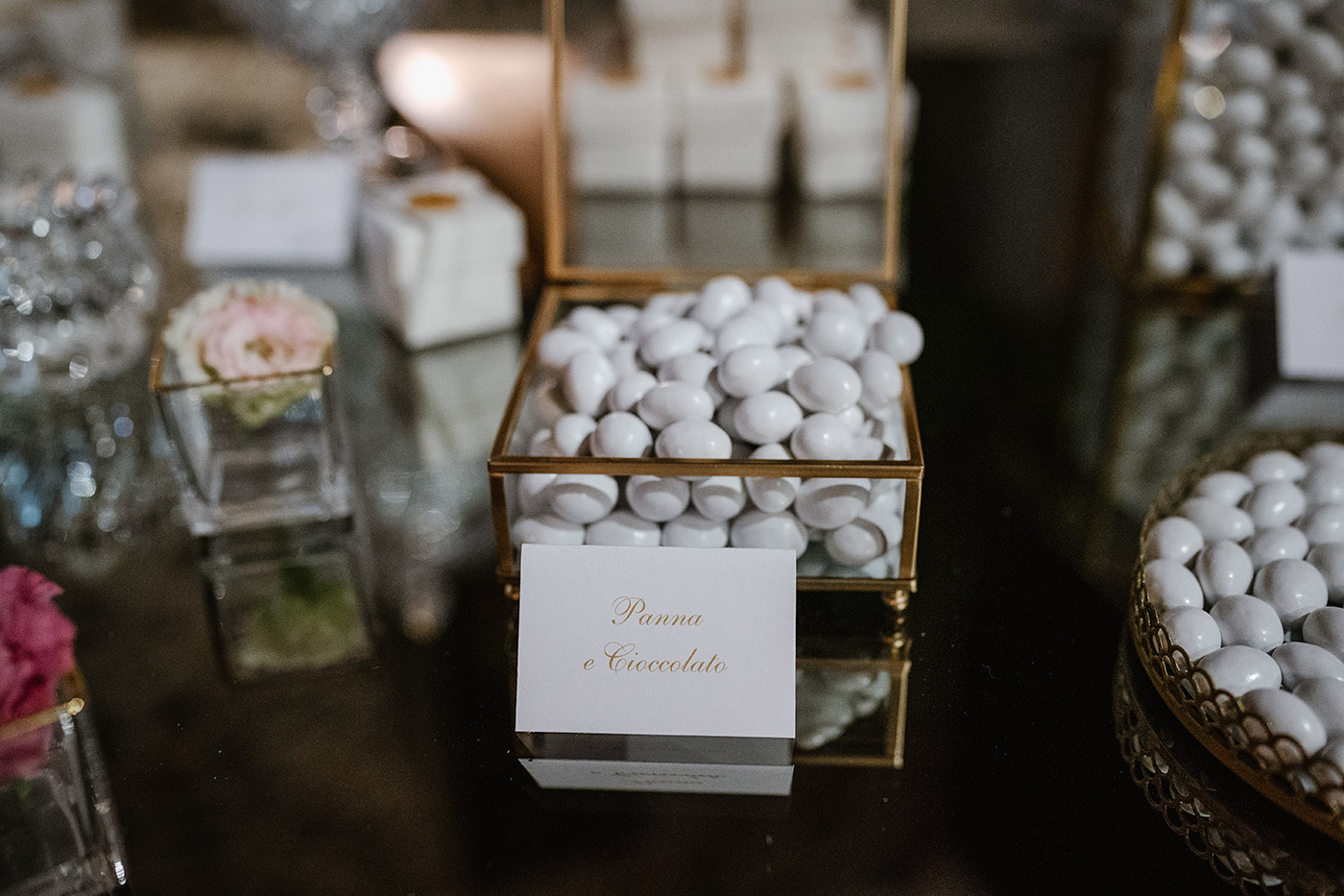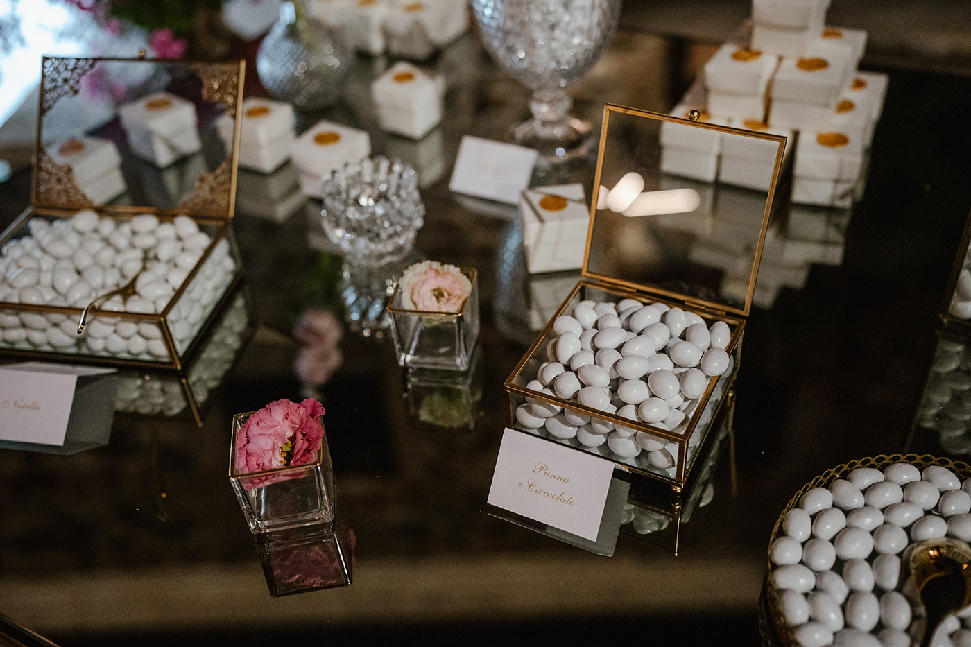 La cerimonia religiosa si è svolta nella cappella intima della tenuta, seguita da un elegante aperitivo nel giardino e da una cena raffinata nella sala interna.