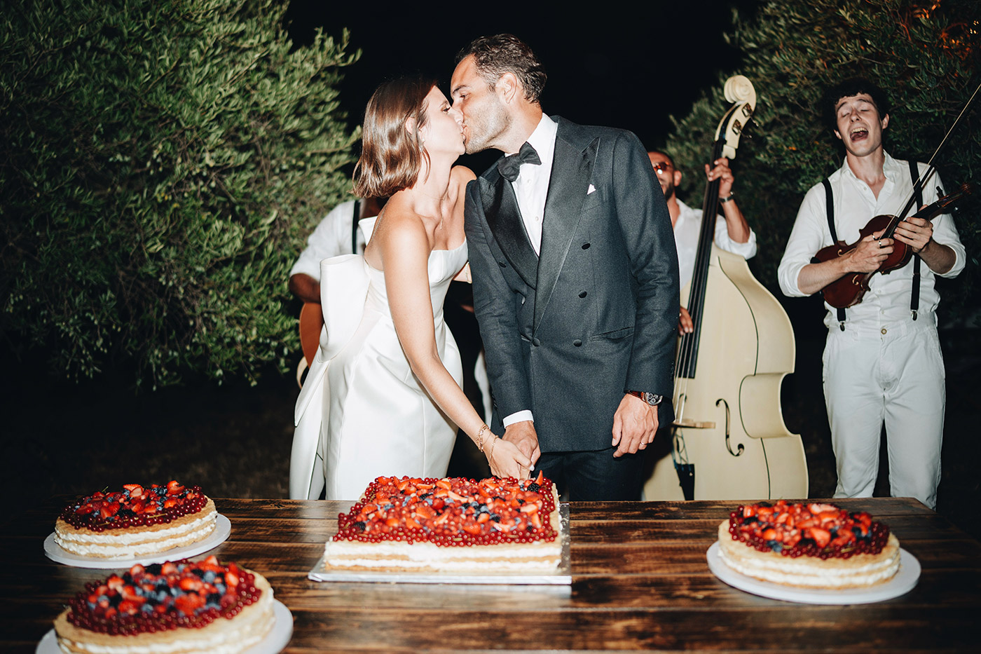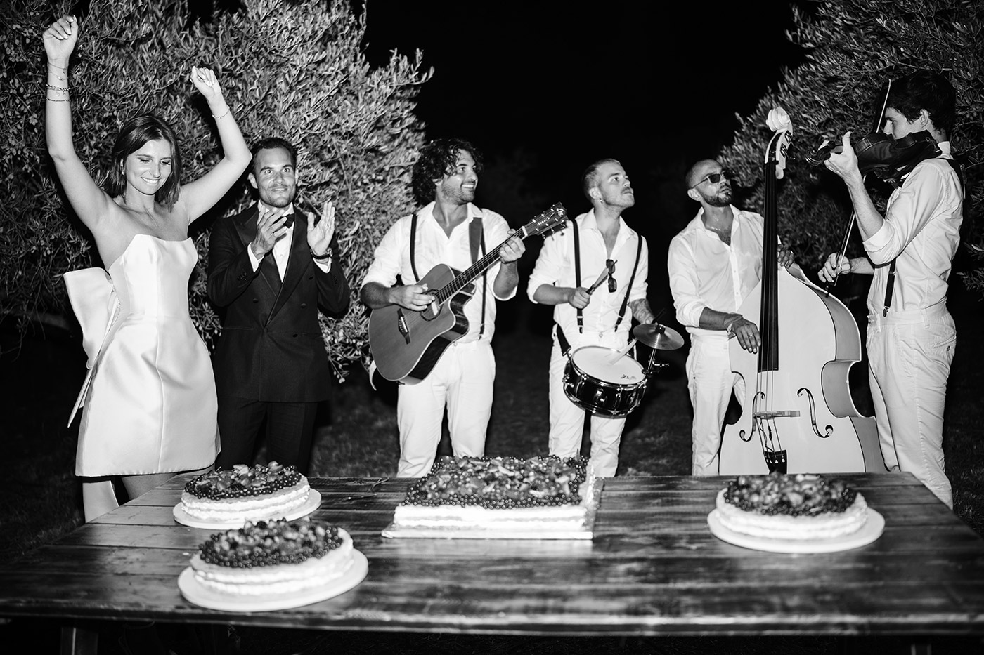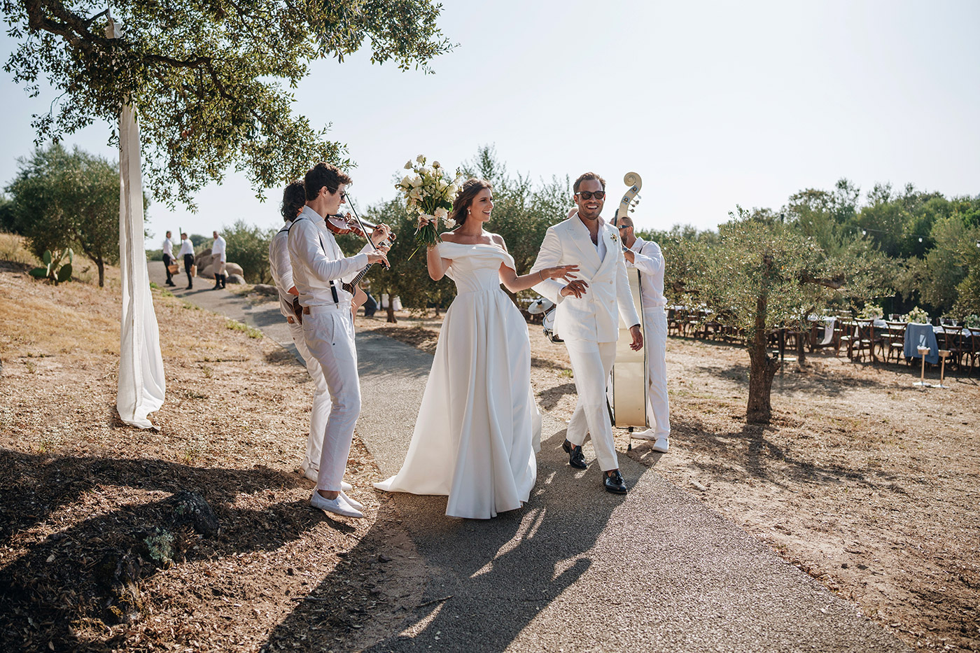 Jana e Julian, dalla Svizzera, grandi amanti della Sardegna, hanno voluto mostrare ai loro ospiti internazionali non solo il mare, ma anche l’anima autentica dell’isola. Dopo la cerimonia in chiesa, hanno festeggiato con aperitivo, cena e party in una splendida location immersa tra gli ulivi, dove abbiamo creato per loro un’atmosfera magica.